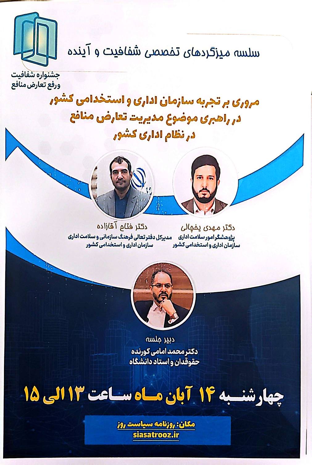 برگزاری میزگرد مروری بر تجربه سازمان اداری و استخدامی کشور در راهبری موضوع مدیریت تعارض منافع در نظام اداری کشور در روزنامه سیاست روز