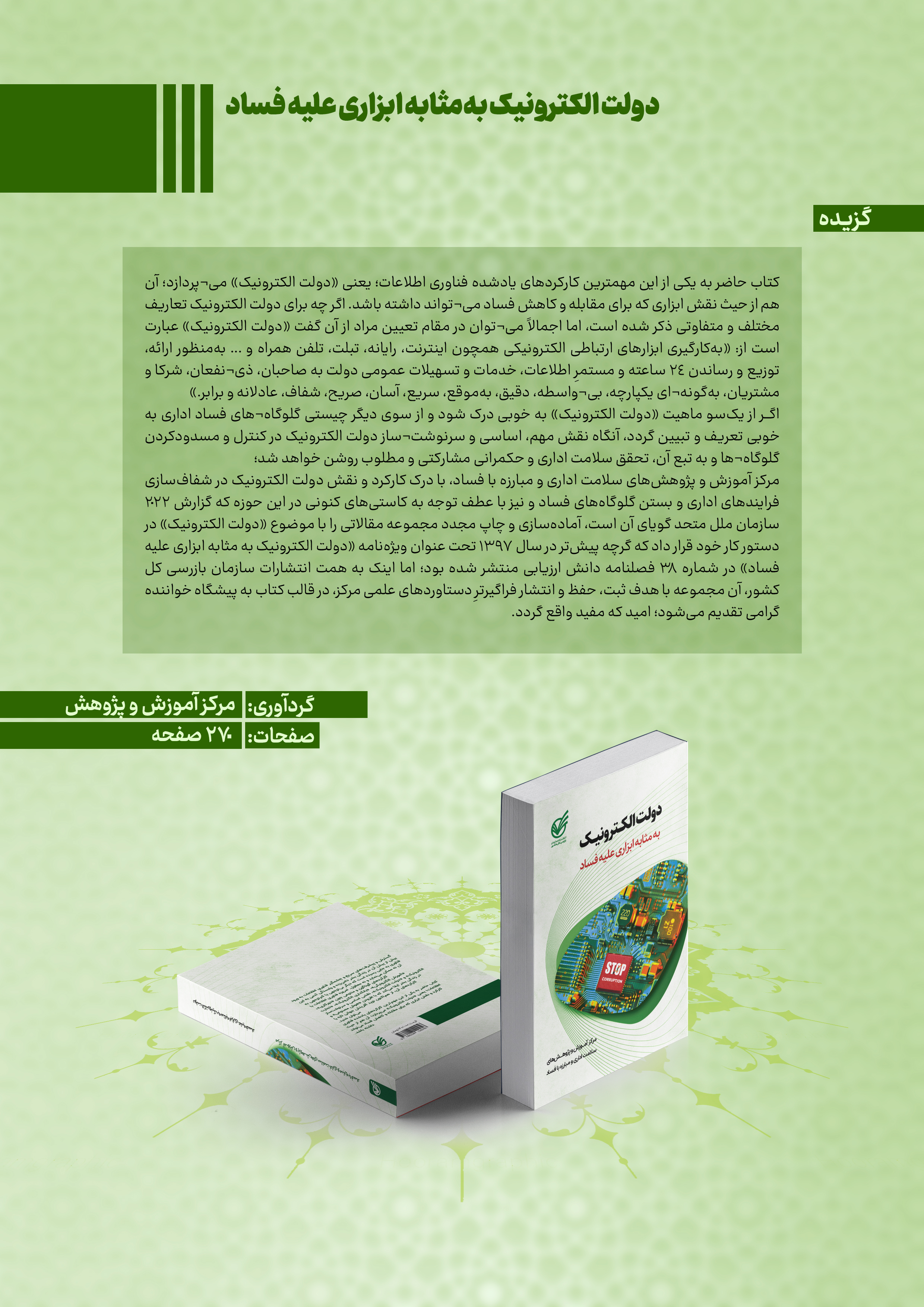 - توصیههای نظارتی قائم مقام سازمان بازرسی به بازرسان و کارکنان سازمان بازرسی/ ضرورت بروزرسانی برنامههای کلان استانها و شناسایی دقیق بسترهای فسادزا/ هشدار به مدیران فاقد صلاحیت و ضعیف/ تشدید نظارت بر دستگاههای ناظر در زمینه موضوعات اقتصادی و معیشتی مردم 04/11/01