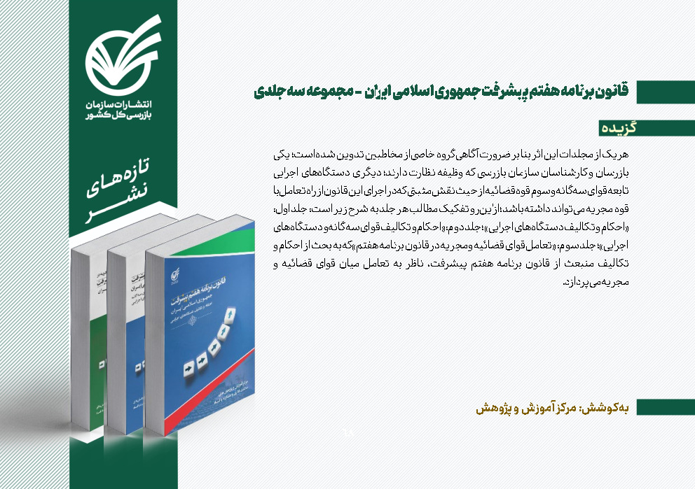 تازه‌های نشر 58. قانون برنامه هفتم پیشرفت جمهوری اسلامی ایران مجموعه سه‌جلدی
