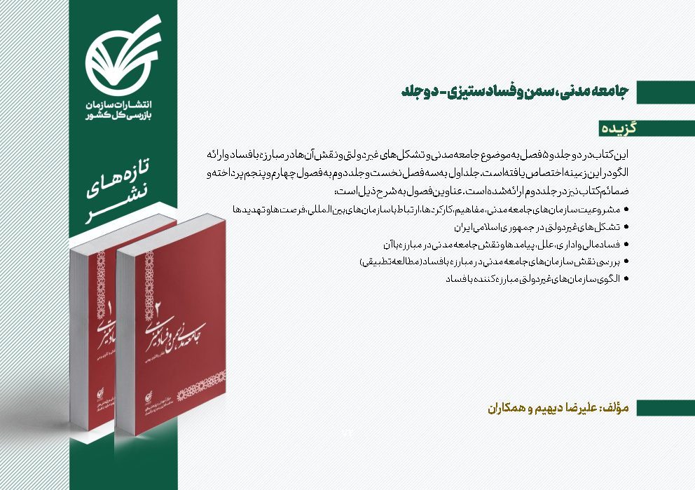 - توصیههای نظارتی قائم مقام سازمان بازرسی به بازرسان و کارکنان سازمان بازرسی/ ضرورت بروزرسانی برنامههای کلان استانها و شناسایی دقیق بسترهای فسادزا/ هشدار به مدیران فاقد صلاحیت و ضعیف/ تشدید نظارت بر دستگاههای ناظر در زمینه موضوعات اقتصادی و معیشتی مردم 04/11/01