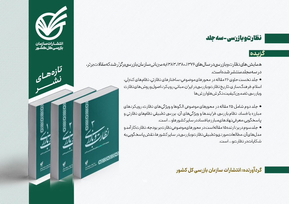 - توصیههای نظارتی قائم مقام سازمان بازرسی به بازرسان و کارکنان سازمان بازرسی/ ضرورت بروزرسانی برنامههای کلان استانها و شناسایی دقیق بسترهای فسادزا/ هشدار به مدیران فاقد صلاحیت و ضعیف/ تشدید نظارت بر دستگاههای ناظر در زمینه موضوعات اقتصادی و معیشتی مردم 04/11/01