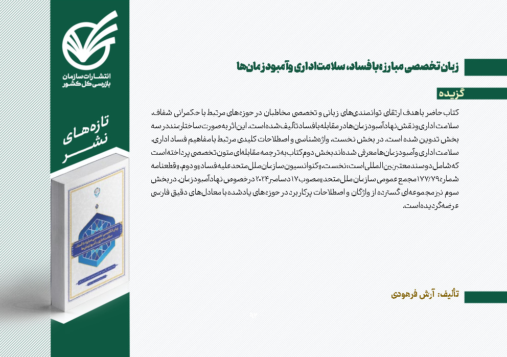 تازه‌های نشر 82. زبان تخصصی مبارزه با فساد، سلامت اداری و آمبودزمان‌ها