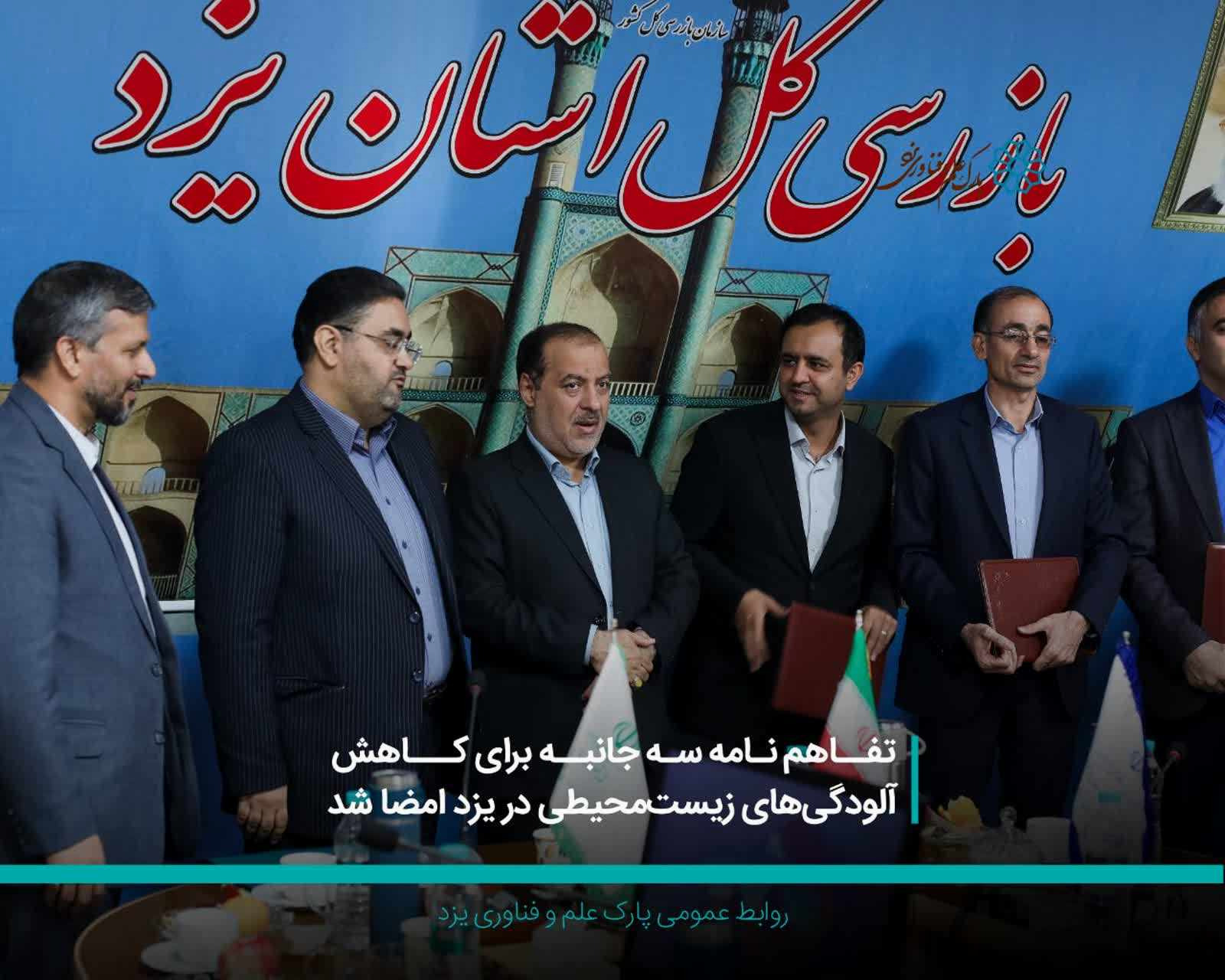 به گزارش روابط عمومی بازرسی کل استان یزد، رضا مختاری بازرس کل قضایی استان از امضای تفاهم‌نامه‌ای سه‌جانبه میان اداره‌کل صنعت، معدن و تجارت، اداره‌کل حفاظت محیط‌زیست و پارک علم و فناوری استان یزد خبر داد.